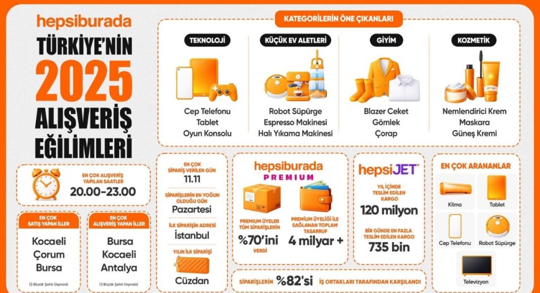 Hepsiburada, 2025 yılı boyunca platformunda verilen milyonlarca siparişi inceleyerek Türkiye’deki alışveriş alışkanlıklarına dair kapsamlı veriler paylaştı.
